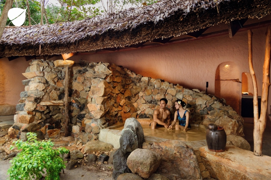 - Sở hữu 01 bungalow riêng biệt từ 8h00 -17h30 - Ngâm nước khoáng nóng thảo dược (20 phút) - Ngâm bùn khoáng nóng (20 phút) - Xông hơi đá muối - Massage toàn thân (60 phút) - Đắp mặt nạ bùn và sữa tươi - 01 bữa ăn chính + trái cây + nước (theo menu) - 01 bữa ăn phụ + trái cây + nước (theo menu) - Quà lưu niệm |
