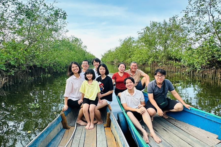 Rừng ngập mặn Rú Chá - Đoàn tự do tham quan, đi dạo và chụp hình với vẻ đẹp hoang sơ của rừng. Rú Chá là rừng ngập mặn nguyên sinh tồn tại trong đầm phá Tam Giang, là đầm phá nước lợ lớn nhất khu vực Đông Nam Á với nhiều loài động thực vật phong phú, nơi cư trú của các loài thủy sinh nước lợ.