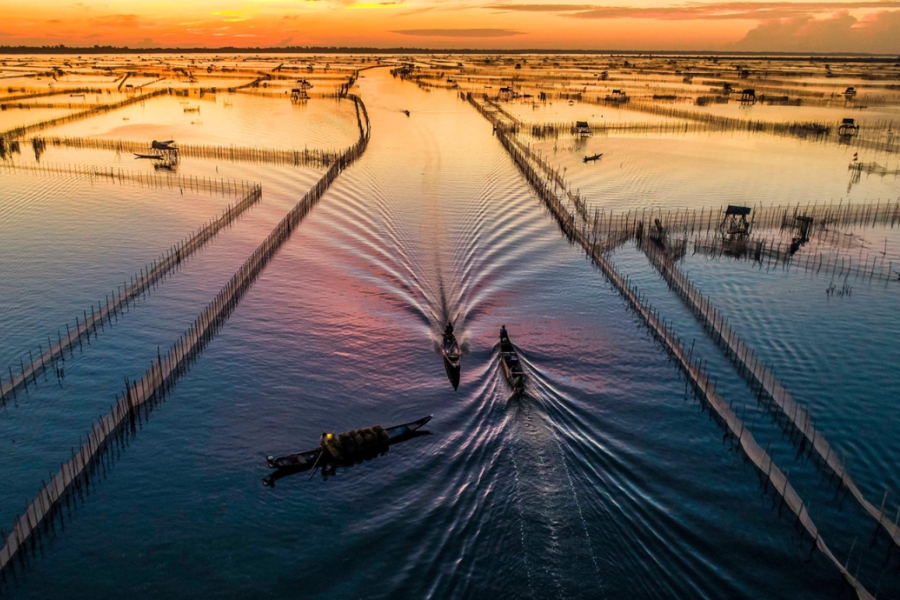 17h00: Ngắm hoàng hôn Phá Tam Giang – khi mặt trời buông xuống, mặt nước phản chiếu ánh vàng cam rực rỡ, tạo nên một khung cảnh lãng mạn đến nao lòng.