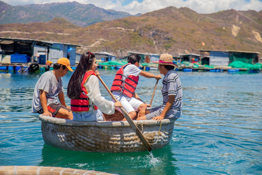 09h15 – 10h00: Quý khách sẽ lên đảo Hòn Miếu để tham gia một trải nghiệm thú vị mang tính đặc thù của địa phương đó là thuyền thúng, thuyền sẽ đưa du khách đi quanh làng chài và cập vào bè cá để thăm quan khu nuôi hải sản của người dân địa phương. Sau đó du khách quay trở lại cano và đích đến là Sỏi Beach để quý khách trải nghiệm các hoạt động tại bãi biển.