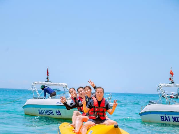 Một điều cũng khiến chúng tôi khó quên trong chuyến đi lần này đó là trò phao chuối. Chiếc phao hình chuối dài nhìn vừa dễ thương lại vừa buồn cười. Khi được cano kéo trên biển, cảm giác lướt trên mặt sóng đúng là khó quên. Trò phao chuối khiến các thành viên đều không ngớt tiếng cười. Nếu có dịp du lịch biển đảo Việt Nam lần nữa tôi chắc chắn không bỏ qua trải nghiệm này.