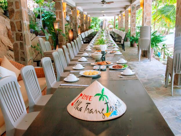 Trong tour đảo Nha Trang lần này đoàn còn ấn tượng bởi bữa cơm với siêu nhiều món ngon. Bữa cơm được chuẩn bị sẵn và chúng tôi chỉ việc thưởng thức. Đây là một bữa ăn mang đặc trưng văn hoá Việt với cơm trắng cùng nhiều món ngon đi cùng. Ấn tượng nhất phải kể đến đó là các món hải sản tươi ngon được chế biến tỉ mỉ. Không chỉ giữ được sự đậm đà hương vị biển mà còn vô cùng kích thích vị giác. Bữa cơm giúp các thành viên có thêm năng lượng để khám phá Việt Nam xinh đẹp.